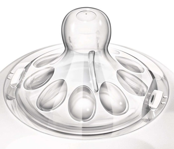 Núm ty được thiết kế theo dáng bầu ngực giúp bé bú mút tự nhiên tương tự như bú mẹ, dễ dàng kết hợp giữa bú mẹ và bú bình. Giờ đây, mẹ sẽ không còn lo lắng hiện tượng bé quấy khóc khi phải bú bình, nhất là vào thời điểm ban đêm.