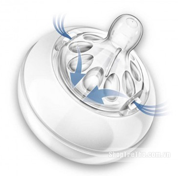 Núm vú có vòng bao độc đáo có thể gập lại để cho không khí vào bình sữa , giúp bé bú chủ động, có lợi cho sức khỏe, giảm la hét và đầy hơi. Hơn nữa, núm vú được thiết kế độc đáo, mô phỏng bầu sữa mẹ, với 2 van khí hai bên giúp hạn chế tối đa tình trạng đầy hơi của bé. Núm vú Avent làm từ silicone không chứa BPA có độ bền cao, dễ làm sạch và tuyệt đối an toàn cho bé.