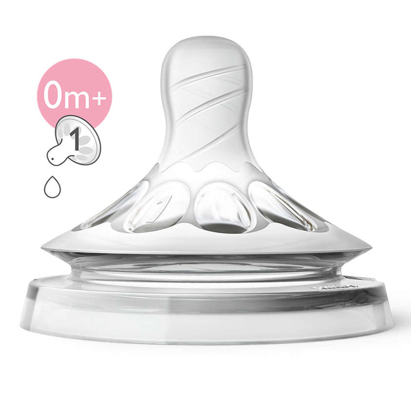 Núm ty Avent tự nhiên SCF651/23 (0M+) với thiết kế mô phỏng giống bầu ngực của mẹ, giúp bé không gặp khó khăn khi chuyển từ ti bình sang ti mẹ. Đầu ty được đục 1 lỗ giúp sữa chảy ra chậm, không làm bé bị sặc nên phù hợp với nhu cầu bú của bé sơ sinh. Núm ty có đầu gân xoắn, giúp bé tránh bị tưa lưỡi khi bú sữa bình.