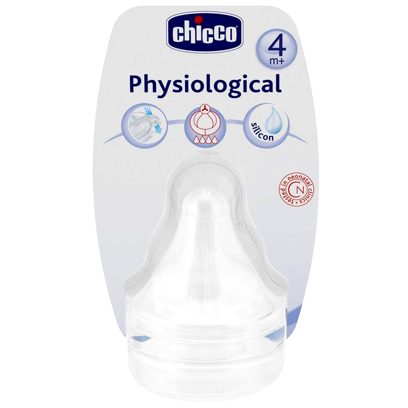 Núm ty Chicco Physiological silicone chống đầy hơi dành cho ăn đặc từ 4 tháng tuổi trở lên
