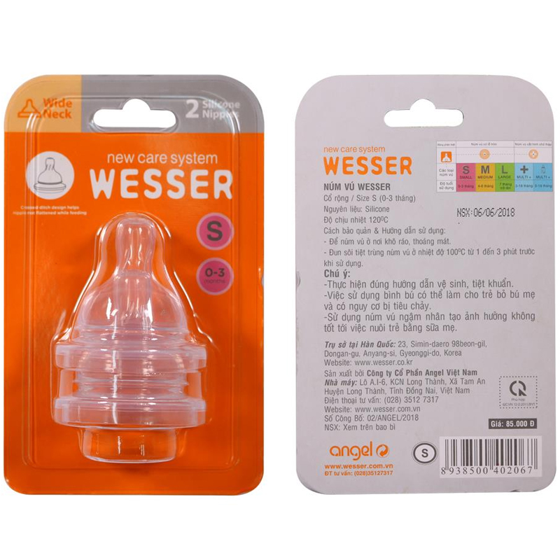 Núm ty Wesser cổ rộng được làm từ chất liệu silicon siêu mềm, mang lại cho bé cảm giác như bú ty mẹ.