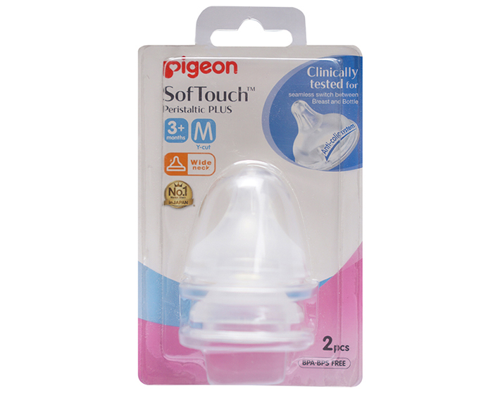 Núm ty Pigeon plus size M cổ rộng làm bằng silicone mềm mại dành cho trẻ từ 3 tháng tuổi