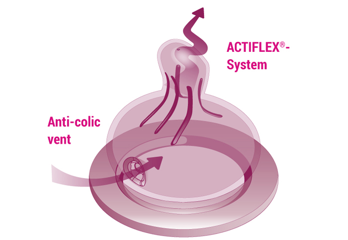 - Hệ thống Antiflex ngăn không cho đầu núm ty bị khóa, đảm bảo cho dòng chảy luôn được đều và không bị ngắt quãng.