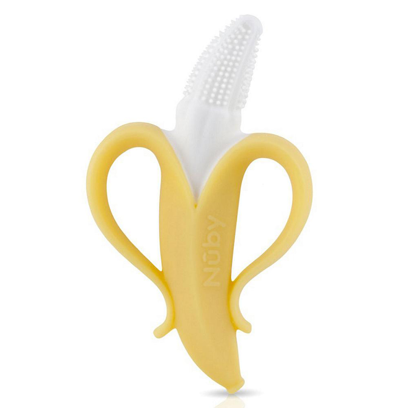 Ngậm nướu hình quả chuối Nuby (3M+) có kích thước chiều dài như một chiếc bàn chải sẽ nhẹ nhàng xoa bóp nướu, làm giảm các cơn đau ngứa của trẻ khi bước vào giai đoạn mọc răng. Gặm nướu được chia thành2 phần: phần lõi màu trắng có đầu được làm sần để tiếp xúc, mát xa cho nướu của bé. Phần màu vàng vỏ chuối có kích thước rộng hơn cùng 2 phần xòe ra giúp bé dễ dàng cầm nắm không bị trơn trượt, đồng thời ngăn không cho gặm nướu đi vào quá sâu trong miệng bé.