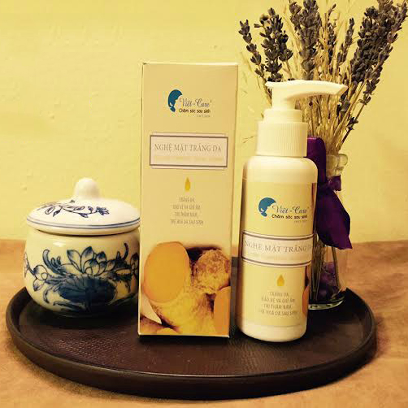 Phụ nữ sau khi sinh làn da thường nám do thay đổi nội tiết tố, kèm theo thâm đen ở bẹn đùi và nách. Với chiết xuất hoàn toàn từ thiên nhiên, trải qua nhiều công đoạn tỉ mỉ, nghệ mặt trắng da Vietcare được chiết xuất từ nghệ cùng các vị thuốc bắc, được xao vàng hạ thổ để loại bỏ tính axit của nghệ, giúp tuần hoàn máu, giảm thâm nám đồng thời giúp tái tạo da trắng hồng tự nhiên.