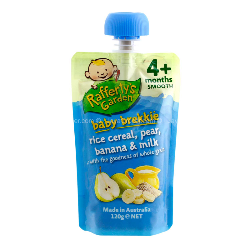 Ngũ cốc ăn liền Rafferty's Garden - gạo, chuối, lê, sữa (4m+) dạng tuýp tiện lợi, mẹ có thể cho bé ăn ở mọi lúc, mọi nơi đặc biệt khi đi du lịch, đi chơi xa, hoặc mẹ không có thời gian chuẩn bị đồ ăn mang theo cho con. Tất cả các nguyên liệu hữu cơ, không chứa chất bảo quản, tuyệt đối an toàn cho bé.