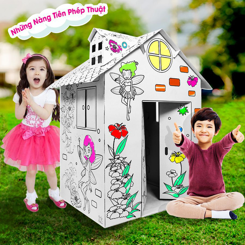 Nhà lắp ghép và tô màu - Những nàng tiên phép thuật sẽ là món đồ chơi thú vị dành cho các bé có thể chơi lắp ghép, tô màu, sau đó chơi cùng bạn bè trong ngôi nhà vừa lắp ráp xong. Sản phẩm được làm từ bìa carton an toàn với nhiều hình vẽ nhiều màu sắc để bé thỏa sức tô màu.