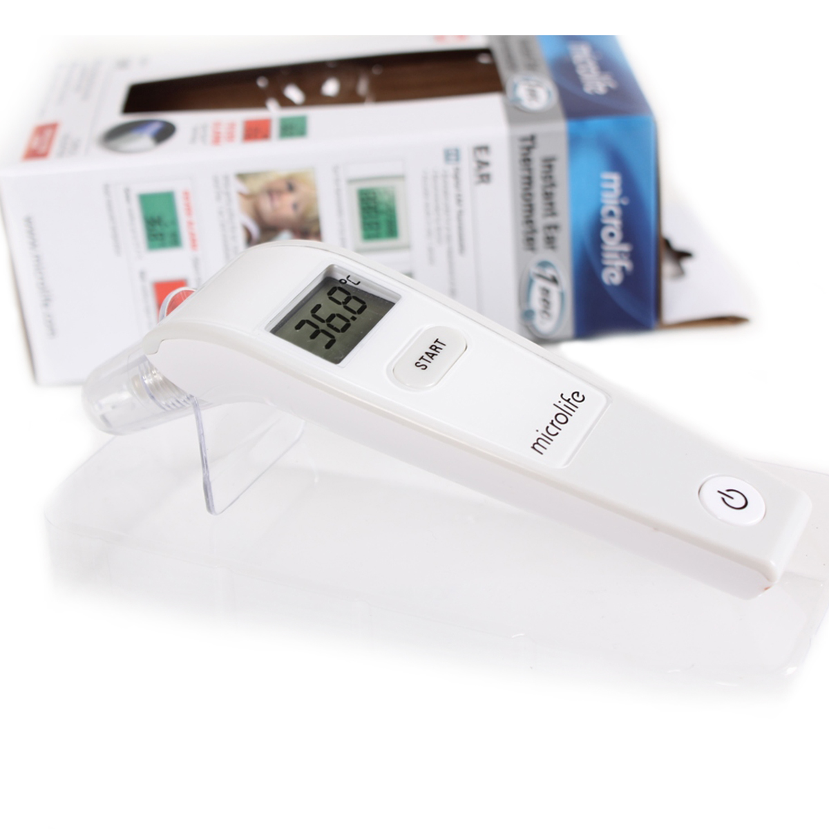 Nhiệt kế điện tử đo tai của hãng Microlife với nhiều tính năng độc đáo, đặc biệt là cho kết quả chỉ trong 1 giây và độ chính xác cực cao. Nhiệt kế ứng dụng công nghệ hồng ngoại đo nhiệt độ cơ thể tại bộ phận phản ánh đúng nhiệt độ cơ thể - tai bằng cách phát hiện các cường độ hồng ngoại xâm nhập. Ưu điểm của sản phẩm là có thiết kế khá nhỏ gọn, dễ mang theo, có thể đo cả nhiệt độ và vật thể cũng như nhiệt độ môi trường.