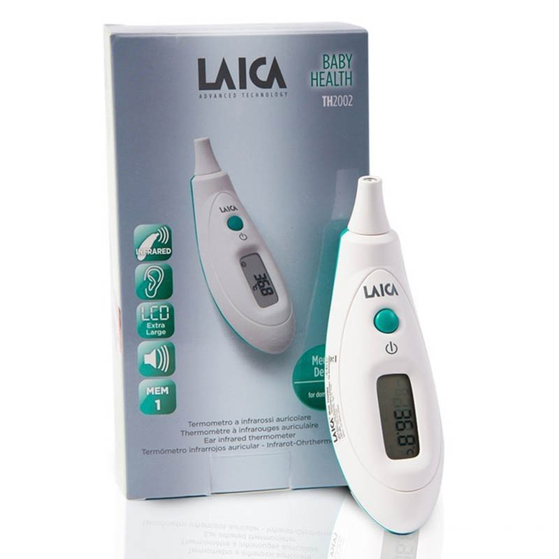 - Nhiệt kế điện tử hồng ngoại Laica TH2002 thế hệ mới do hãng LAICA Italia sản xuất theo tiêu chuẩn CE0434 của Cộng Đồng Châu Âu.