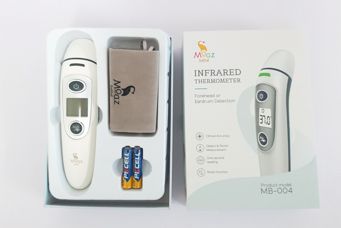 - Nhiệt kế Moaz Bebe MB-004 có thể đo nhiệt độ cơ thể bé, nhiệt độ sữa, nước tắm và đồ vật cũng như môi trường xung quanh