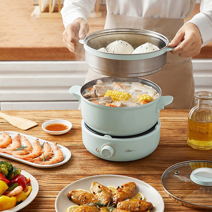 - Với thiết kế Bắc Âu nhỏ gọn, bộ nồi điện đa năng Bear MC-B25V1 2.5L đã tích hợp đủ một căn bếp mini với các chi tiết có thể tháo rời dễ dàng, bao gồm: