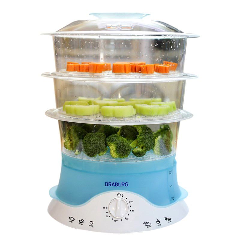 Nồi hấp đa năng BRABURG 3 tầng của CHLB Đức với các khay hấp được thiết kế đặc biệt để đảm bảo cho luồng hơi nóng phân bố đều cho các tầng, các loại thực phẩm lâu chín như thịt gà, cá… thì để bên dưới, rau – quả ở bên trên, thật tiện lợi. Ở các nồi hấp bình thường bạn phải mất nhiều tiếng đồng hồ với việc nấu ăn nhưng với nồi hấp đa năng BRABURG thì bạn chỉ mất khoảng 10p -30p là đã có những món ăn thơm ngon.
