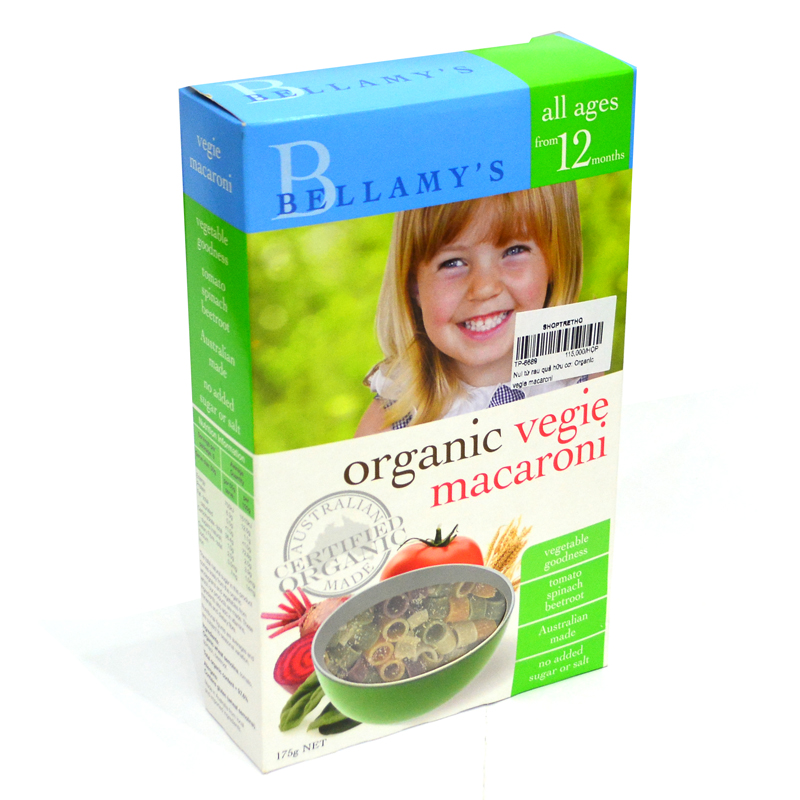 Nui từ rau quả hữu cơ Bellamy's là thực phẩm bổ sung tinh bột và khoáng chất dành cho bé được nhập khẩu trực tiếp từ Australia (Úc) với các tiêu chuẩn về chất lượng nghiêm ngặt, đảm bảo an toàn và giúp bé phát triển thể chất nhờ hấp thụ các sản phẩm chất lượng từ Bellamy's
