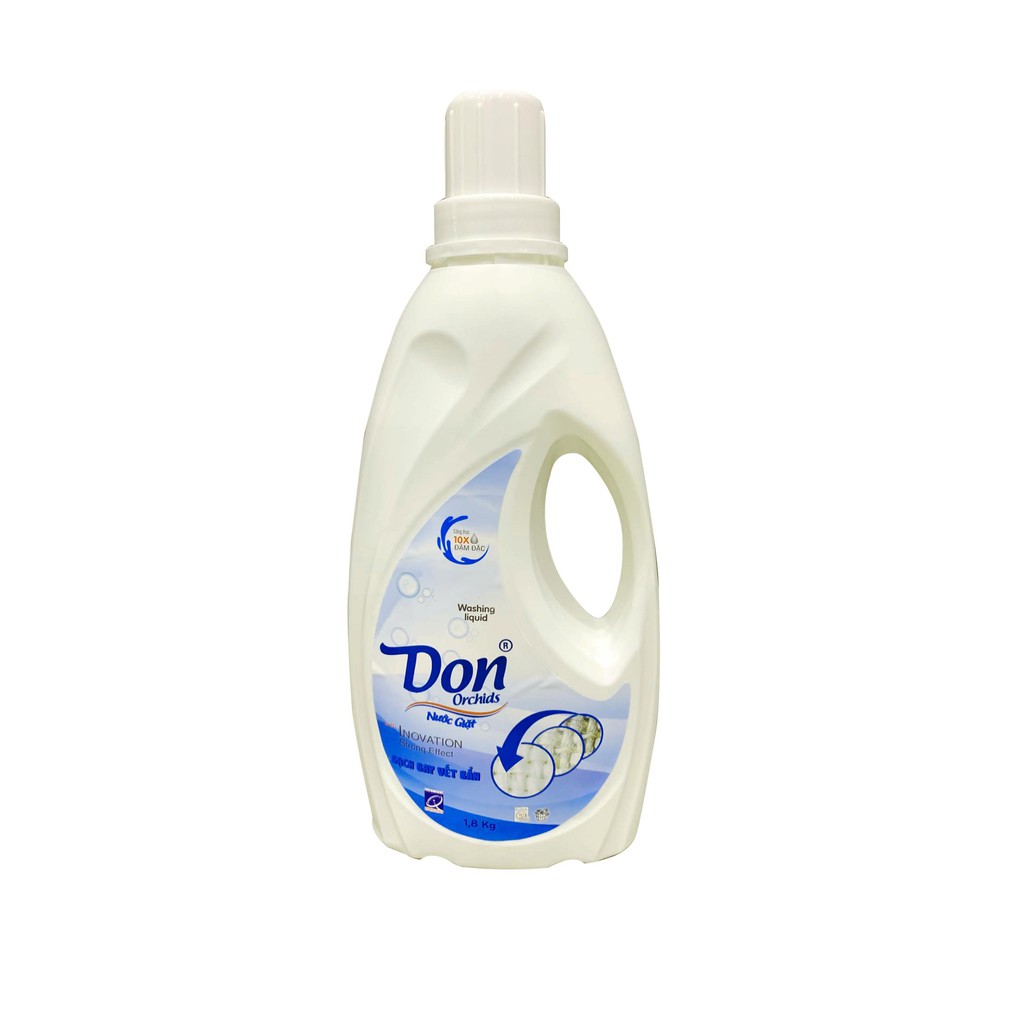 Nước giặt DON ORCHID 1.8kg (màu trắng) với công thức 10x đậm đặc giúp giặt sạch và tiết kiệm hơn. Với tính năng kháng khuẩn, chống viêm từ các nguyên liệu tự nhiên, sản phẩm rất an toàn với làn da. Sản phẩm không chứa hóa chất độc hại: paraben, chất làm trắng quang học, chlor, phthalate, phosphate, màu tổng hợp.