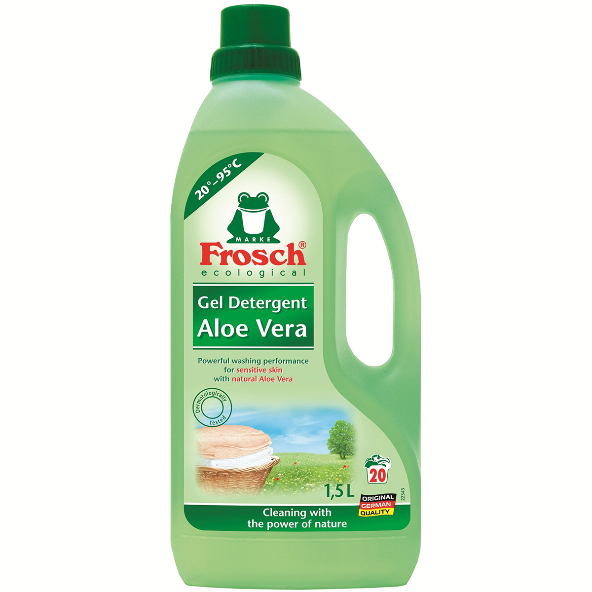Nước giặt xả Frosch dạt tiêu chuẩn sinh học - BIO - từ năm 1986 tại Đức, đây là thương hiệu nước giặt tẩy sinh học hàng đầu Châu Âu. Nước giặt hương lô hội Frosch có thành phần chiết xuất từ tinh dầu lô hội với khả năng tẩy rửa mạnh mẽ nhưng vẫn vô cùng dịu nhẹ và an toàn với làn da nhạy cảm của trẻ sơ sinh và trẻ nhỏ.