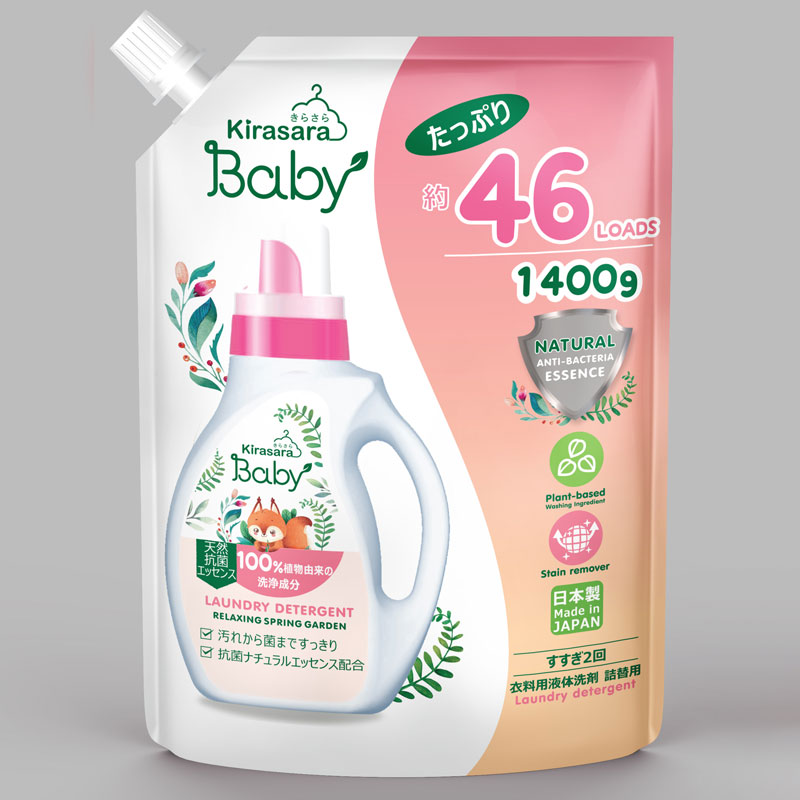 Nước giặt Kirasara Baby kháng khuẩn 1400g (túi) được sản xuất bởi tập đoàn NS FaFa, top 3 thương hiệu có thị phần cao nhất tại thị trường Nhật Bản ở phân khúc sản phẩm dành cho trẻ em. Đặc biệt, sản phẩm có mặt đầu tiên tại Việt Nam.