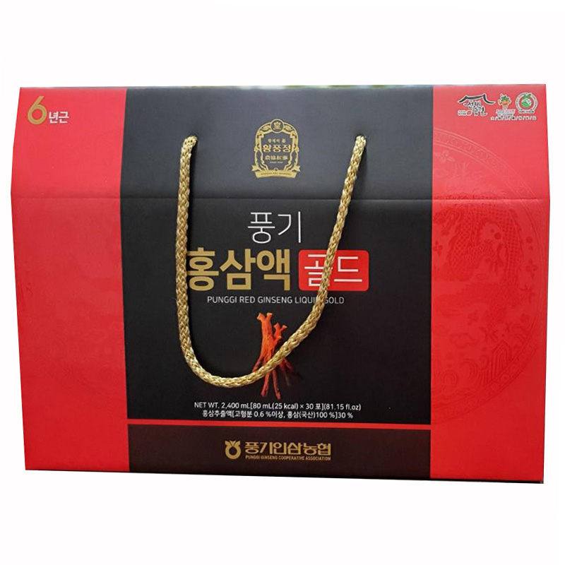 Nước hồng sâm bổ dưỡng Punggi Ginseng dạng túi (80ml) được chiết xuất từ các loại nguyên dược liệu quý hiếm như hồng sâm Hàn Quốc, củ arrowroot và các loại thảo quả, nấm linh chi,... Sản phẩm là một trong những loại nước uống có tác dụng bồi bổ sức khoẻ, tăng cường thể lực và sức đề kháng, sức chịu đựng, các cơ quan trong cơ thể phục hồi tốt hơn và duy trì sự cân bằng.