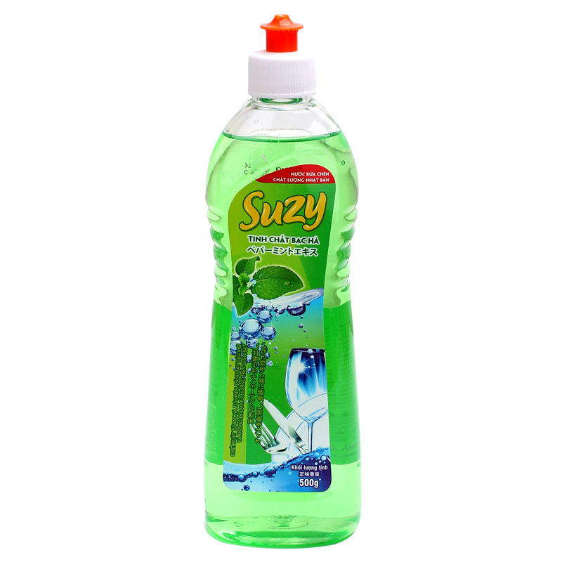 Nước rửa bát Suzy (500g) được sản xuất theo tiêu chuẩn JIS K3370 Nhật Bản theo nhượng quyền của Akino-JP Quốc tế. Sản phẩm hoàn toàn không có hóa chất độc hại, an toàn với da tay, làm sạch mọi vết bẩn trên chén đĩa và để lại hương thơm tự nhiên. Tinh chất bạc hà thiên nhiên dễ chịu an toàn với da tay, kết hợp với hoạt tính ion giúp tẩy rửa sạch, diệt khuẩn và khử mùi các vết dầu mỡ bẩn, cháy khét, gỉ sét, ố trà.