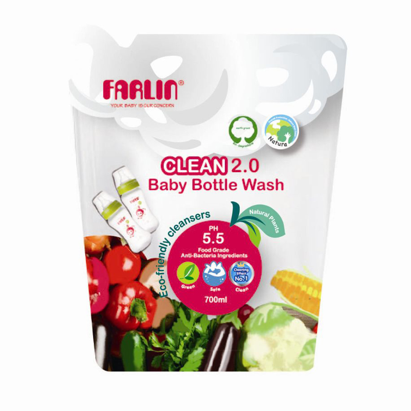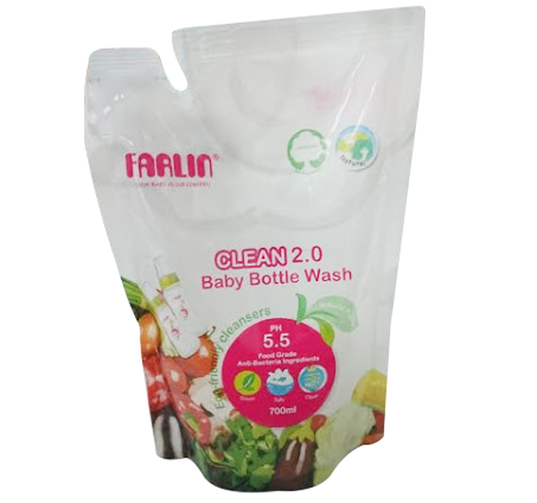 Nước rửa bình sữa sinh thái Farlin 700ml (dạng túi) được chiết xuất từ trái quất tự nhiên, với độ PH tự nhiên 5.5 giúp làm sạch bình sữa, rửa rau củ quả, an toàn cho trẻ nhỏ đồng thời không gây dị ứng da cho người sử dụng.