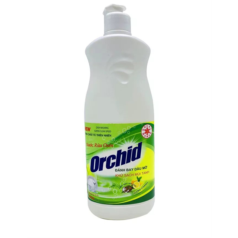 Nước rửa chén Orchid 500ml (hương chanh) với thành phần có nguồn gốc thiên nhiên đánh bay vết dầu mỡ trên bát đĩa, loại bỏ vi khuẩn, khử mùi tanh, mùi thức ăn nhờ hương chanh tự nhiên thơm mát. Không hại da tay, không độc hại cho nguồn nước. Đã được xuất khẩu sang Nhật Bản và nhiều nước khác.