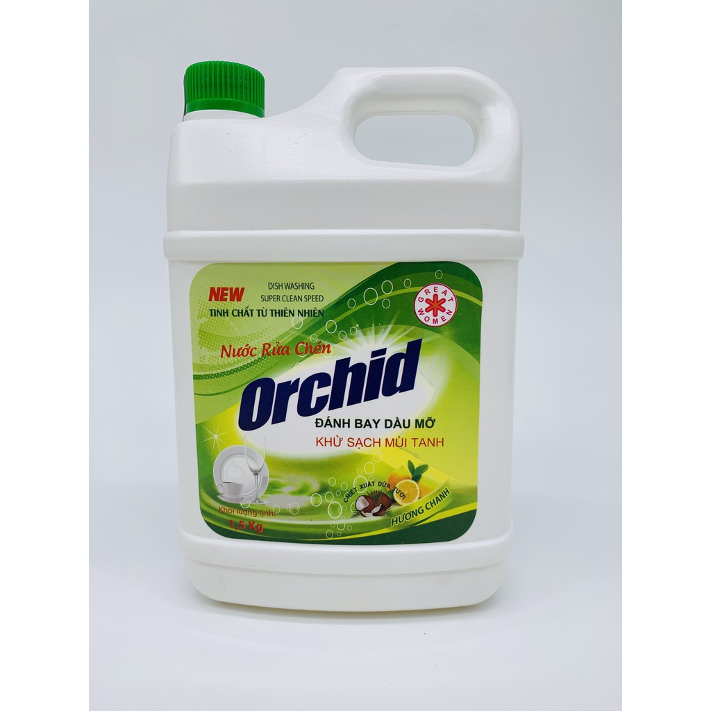 Nước rửa chén Orchid 5kg (hương chanh) với thành phần có nguồn gốc thiên nhiên đánh bay vết dầu mỡ trên bát đĩa, loại bỏ vi khuẩn, khử mùi tanh, mùi thức ăn nhờ hương chanh tự nhiên thơm mát. Không hại da tay, không độc hại cho nguồn nước. Đã được xuất khẩu sang Nhật Bản và nhiều nước khác.