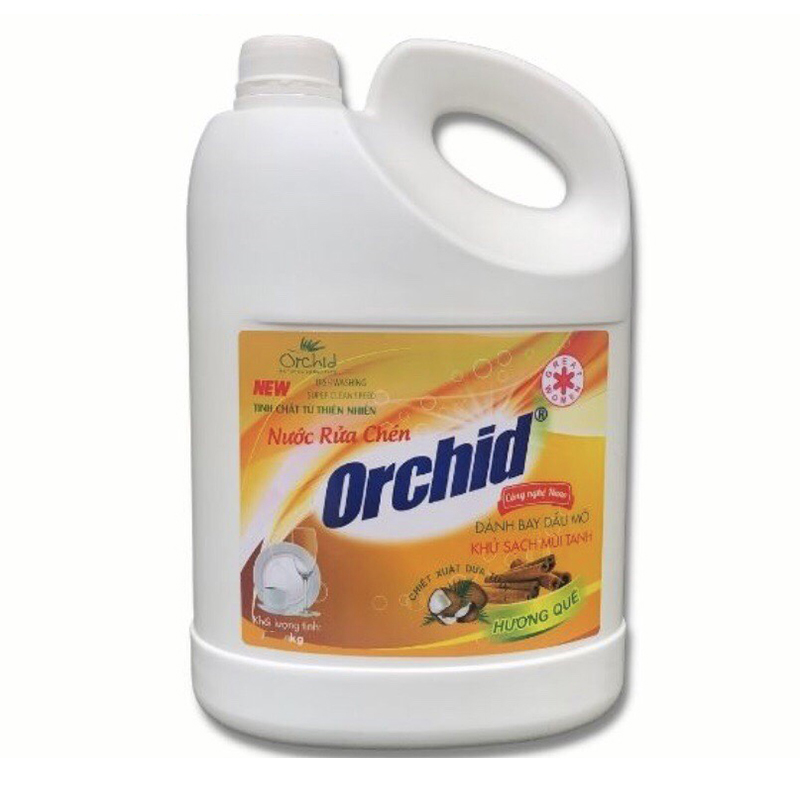 Nước rửa chén Orchid 5kg (hương quế) đánh bay vết dầu mỡ trên bát đĩa, loại bỏ vi khuẩn, khử mùi tanh, mùi thức ăn nhờ hương chanh tự nhiên thơm mát. Với thành phần thiên nhiên không hại da tay, không độc hại cho nguồn nước. Sản phẩm đã được xuất khẩu sang Nhật Bản và nhiều nước khác.