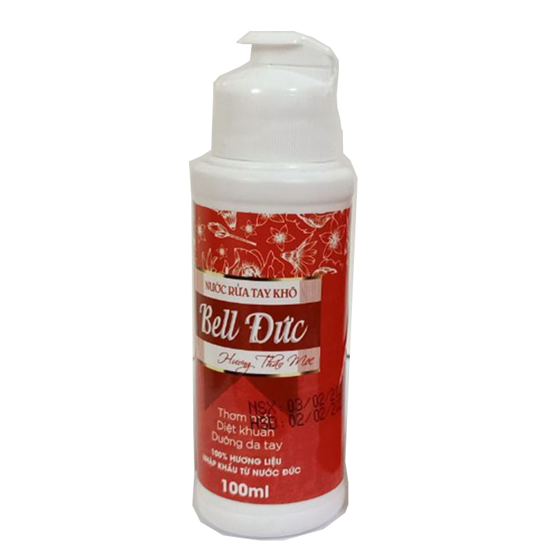 - Dung dịch sát khuẩn nhanh, nước rửa tay khô Bell Đức – 100ml có chức năng sát khuẩn tay nhanh, diệt trừ vi khuẩn cao, được ứng dụng phổ biến trong lĩnh vực chăm sóc, bảo vệ sức khỏe cộng đồng, an toàn cho da. có khả năng diệt khuẩn cực rộng nên có thể diệt hầu hết các loài vi khuẩn gây bệnh trên da, diệt nấm, diệt vi rút nhưng không làm hại da tay khi sử dụng nhiều lần trong ngày.