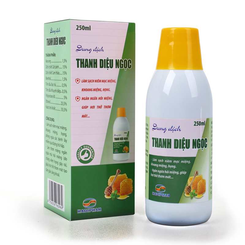 Nước súc miệng Thanh Diệu Ngọc 250ml chiết xuất hoàn toàn từ thảo dược hỗ trợ giảm đau, giảm viêm, khử mùi hôi, ngăn ngừa các bệnh viêm nhiễm về đường răng miệng, giúp phòng ngừa và ngăn chặn các bệnh răng miệng hiệu quả, an toàn.