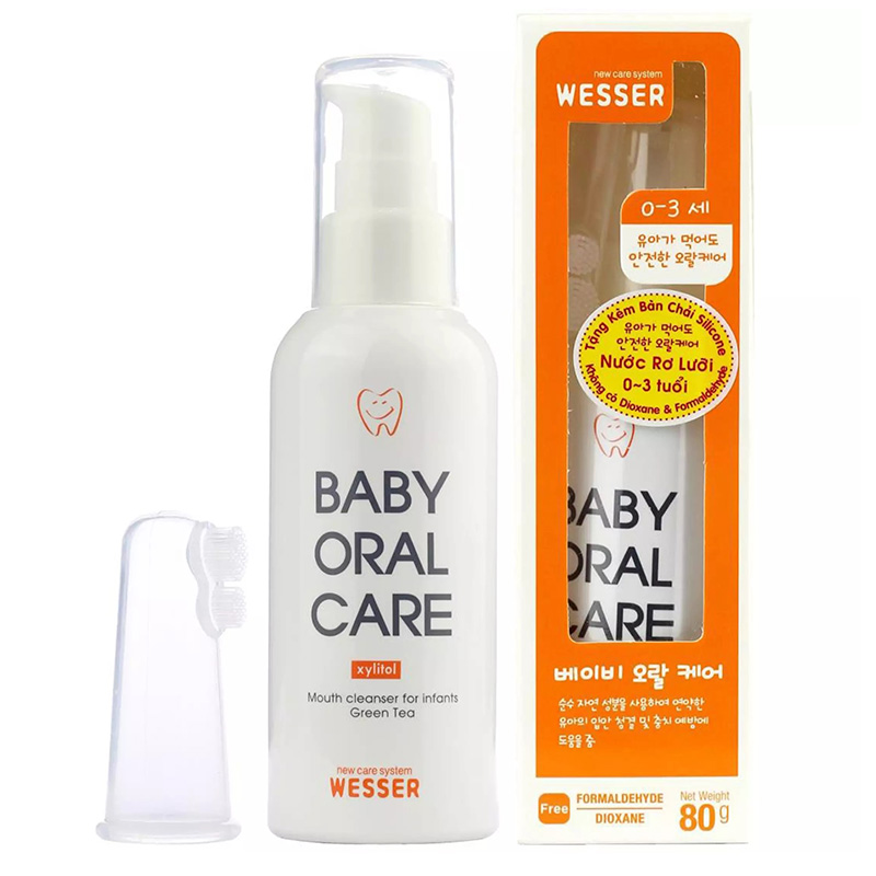 - Thật tuyệt vời vì bé không cần xúc miệng lại sau khi rơ lưỡi,WesserBaby Oral Care không tạo bọt, nuốt an toàn,không làm bé buồn nôn. Sản phẩm tặng kèm bàn chải Silicone giúp massage răng lợi, giảmđau khi bé mọc răng.