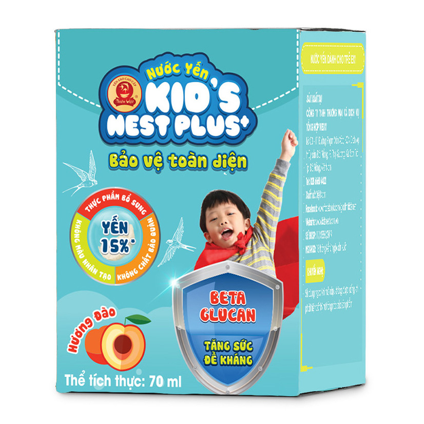 Nước yến Kid's Nest Plus+ hương đào giúp tăng cường hệ miễn dịch cho bé
