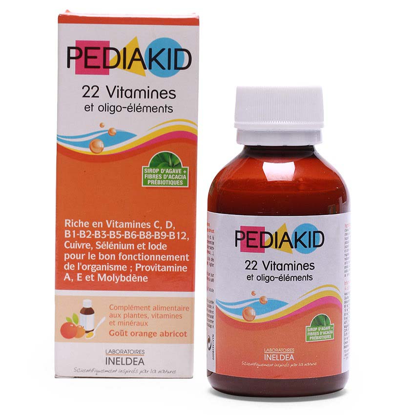 Pediakid - 22 Vitamin và khoáng chất được tinh chế từ thảo dược dành cho trẻ em trong giai đoạn tăng trưởng phát triển cho tới khi trưởng thành nhằm bổ xung hàng ngày các Vitamine và các nguyên tố vi lượng giúp đạt hiệu quả tốt cho sự phát triển và tạo lập cân bằng, lâu dài bền vững trong suốt quá trình phát triển của trẻ.