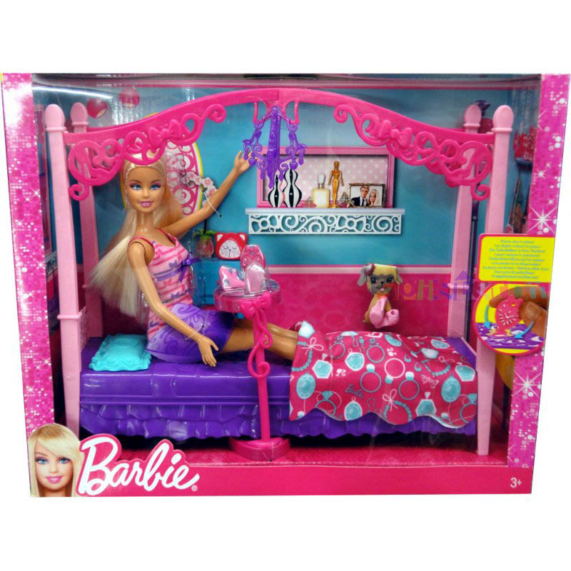 Với bộ giường ngủ xinh xắn này, búp bê Barbie chắc chắn sẽ có được giấc ngủ ngon. Mặc chiếc váy ngủ hồng ngọt ngào, búp bê Barbie đã sẵn sàng thư giãn trên chiếc giường của mình. Barbie có thể đọc sách, nhâm nhi đồ uống ấm hoặc chải mái tóc suông mềm của mình, thư giãn để ngủ ngon hơn