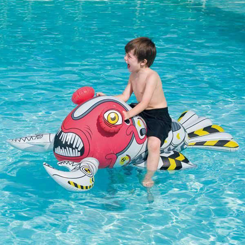 Phao bơi hình tôm có kích thước lớn giống như một con tôm khổng lồ được bơm căng hơi giúp nổi nhẹ trên mặt nước mang tới những kích thích và khơi gợi sự tò mò của bé, giúp bé tự tin hơn khi xuống nước. Với chú tôm khổng lồ này, các bé có thể cưỡi trên lưng nó thật thú vị, tạo cho bé những cảm giác vô cùng thoải mái. Được làm từ chất liệu nhựa PVC cao cấp, phao bơi hình con tôm chính hãng Bestway sẽ mang tới cho bé những trải nghiệm thú vị trong hè này.