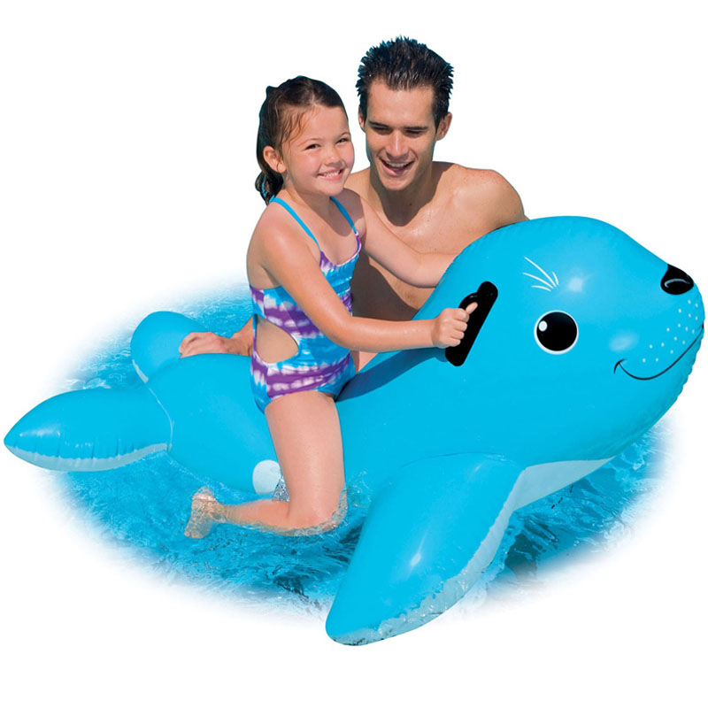 Phao bơi cho bé hình Hải Cẩu 56560 sau khi bơm thành 1 chú sư tử biển dài 1m30 màu xanh rất đẹp