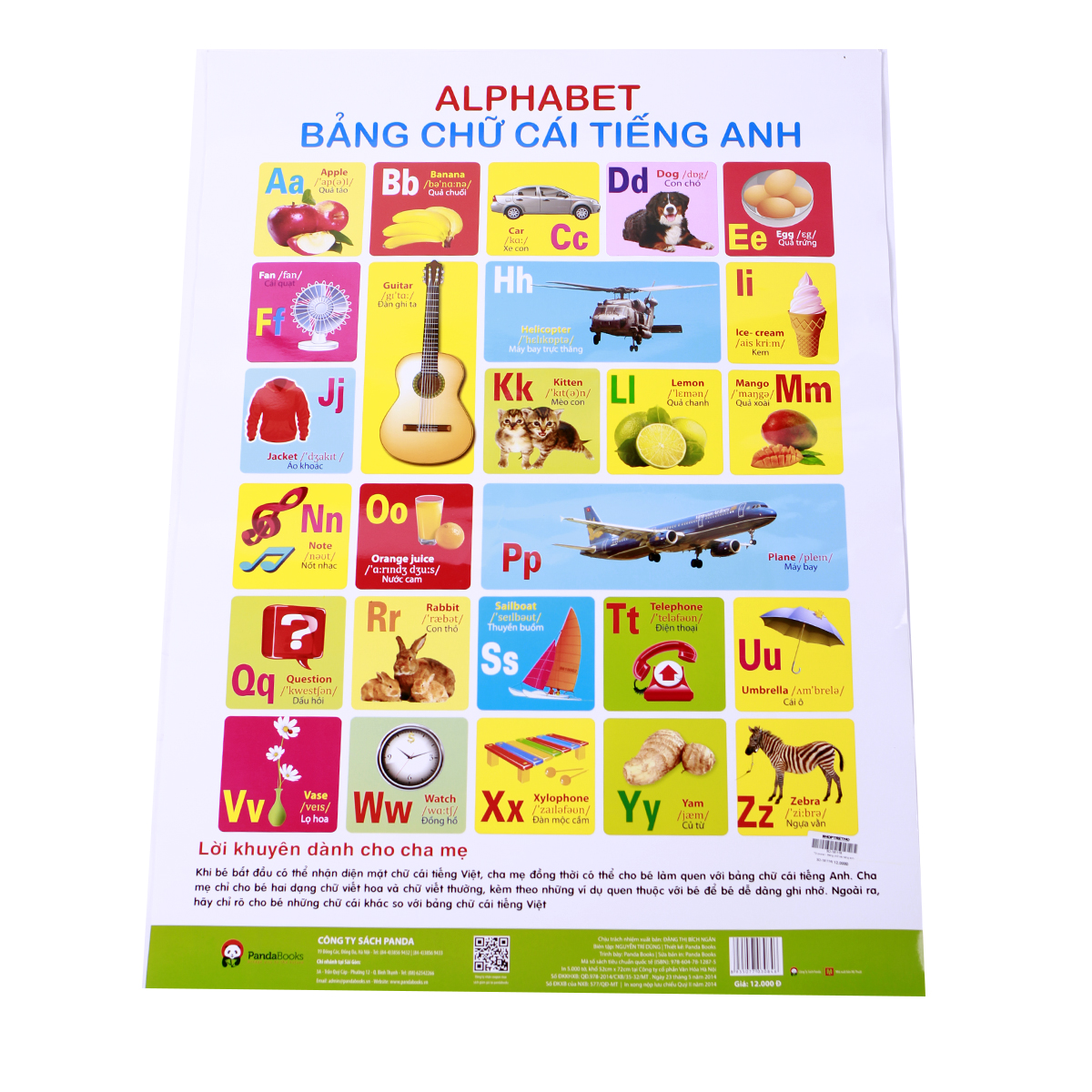 - Poster bảng chữ cái tiếng Anh cho bé học tiếng Anh bằng hình ảnh dành cho lứa tuổi mẫu giáo lớn và đầu tiểu học giúp bé mở rộng vốn hiểu biết và học tiếng Anh ở nhiều chủ đề kiến thức khác nhau.