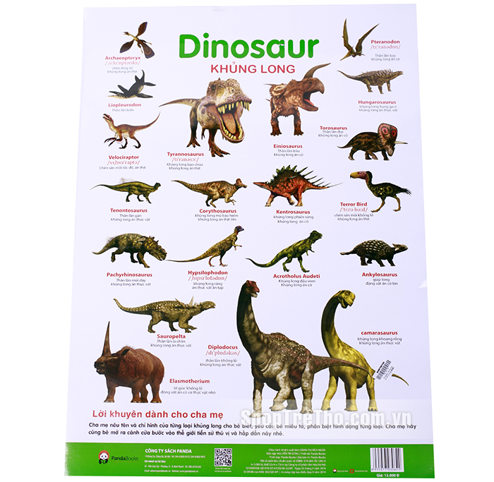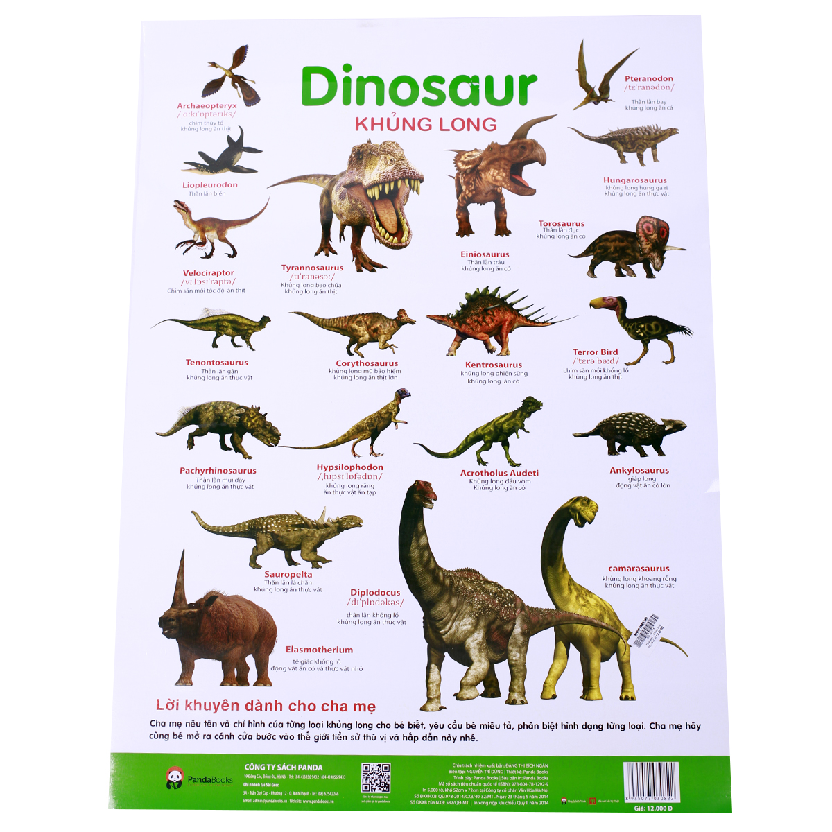 - Poster treo tường chủ đề khủng long cho bé học tiếng Anh bằng hình ảnh lứa tuổi mẫu giáo lớn và đầu tiểu học giúp bé mở rộng vốn hiểu biết và học tiếng Anh ở nhiều chủ đề kiến thức khác nhau.