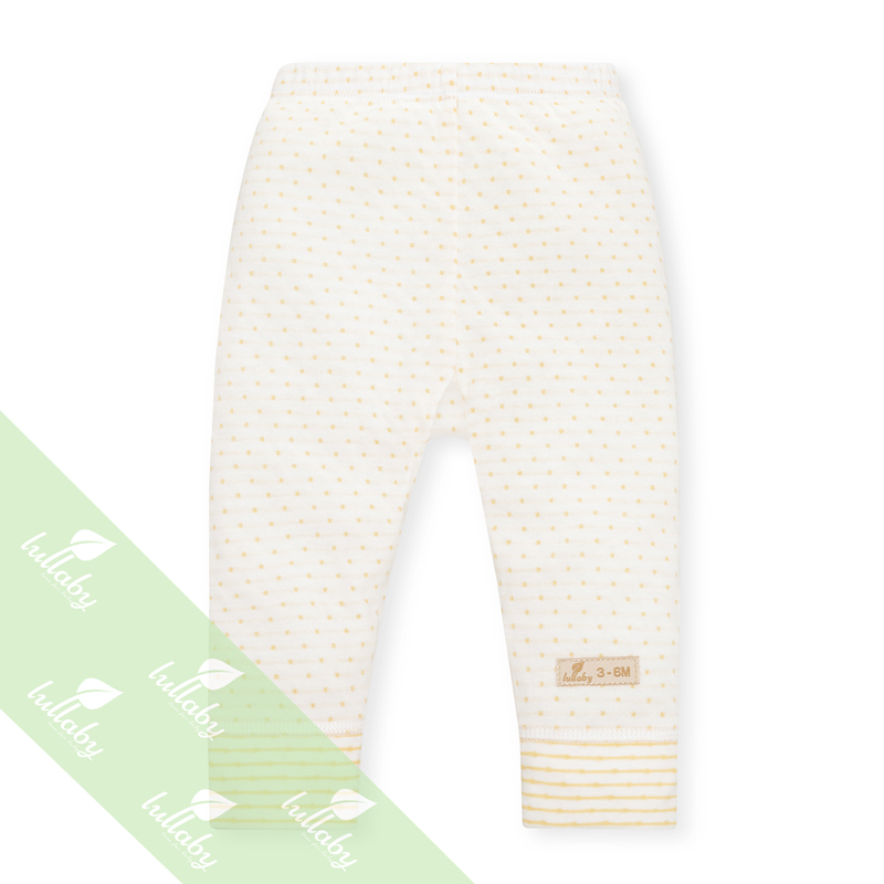 Họa tiết chấm tròn và kẻ ngang đơn giản tạo sự khác biệt tại phần bo gấu quần. Bé mặc trang phục Lullaby trở nên sinh động, tinh nghịch và đáng yêu hơn.