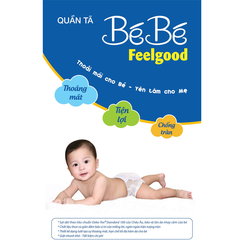 Mùa hè đến rồi, các mẹ đã dùng chiếc quần dệt mặc tã giấy BEBE FEELGOOD cho bé nhà mình chưa? Đảm bảo các mẹ sẽ rất hài lòng về chất lượng và thiết kế tiện dụng của sản phẩm. Quần được dệt từ sợi polyester theo tiêu chuẩn Eoko-Tex Standard 100 của Châu Âu, bảo vệ làn da nhạy cảm của bé, chất liệu thun co giãn giữ vị trí của miếng lót, ngăn ngừa hiện tượng tràn kết hợp với thiết kế dạng lưới tạo sự thoáng mát, hạn chế tối đa hăm da cho bé.