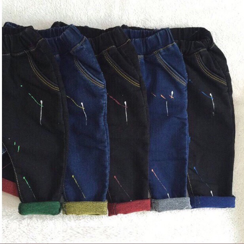 - Quần được may bằng chất liệu bò để bé thoải mái vận động không có cảm giác khó chịu, gò bó