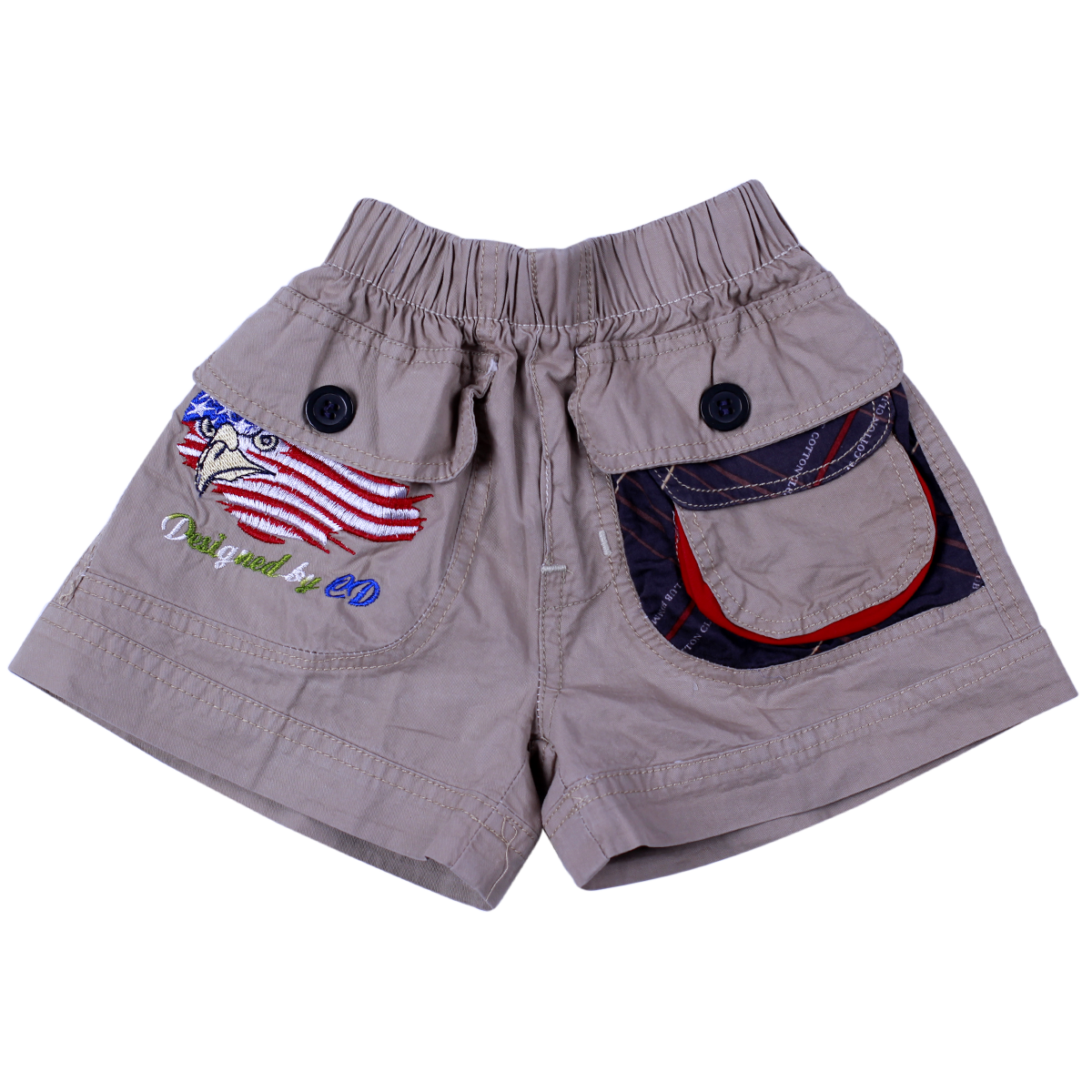 - Quần sooc kaki kiểu dáng rộng rãi, thoáng mát giúp các bé trai thoải mái vận động, chơi đùa.