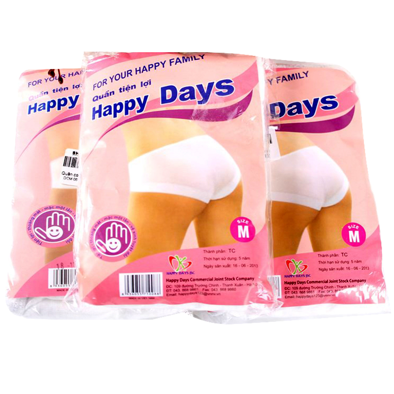 Quần lót cotton Happydays là sản phẩm chỉ sử dụng một lần. Sản phẩm thời trang tao nhã phù hợp với chị em mọi lứa tuổi. Chiếc quần với thiết kế thông minh cho bạn trải nghiệm sự êm ái tuyệt đối. Lớp đáy của quần cho bạn cảm giác dễ chịu không gây kích ứng da, rất vệ sinh trong quá trình sử dụng, dây thun lưng co giãn tốt tạo sự thoải mái.