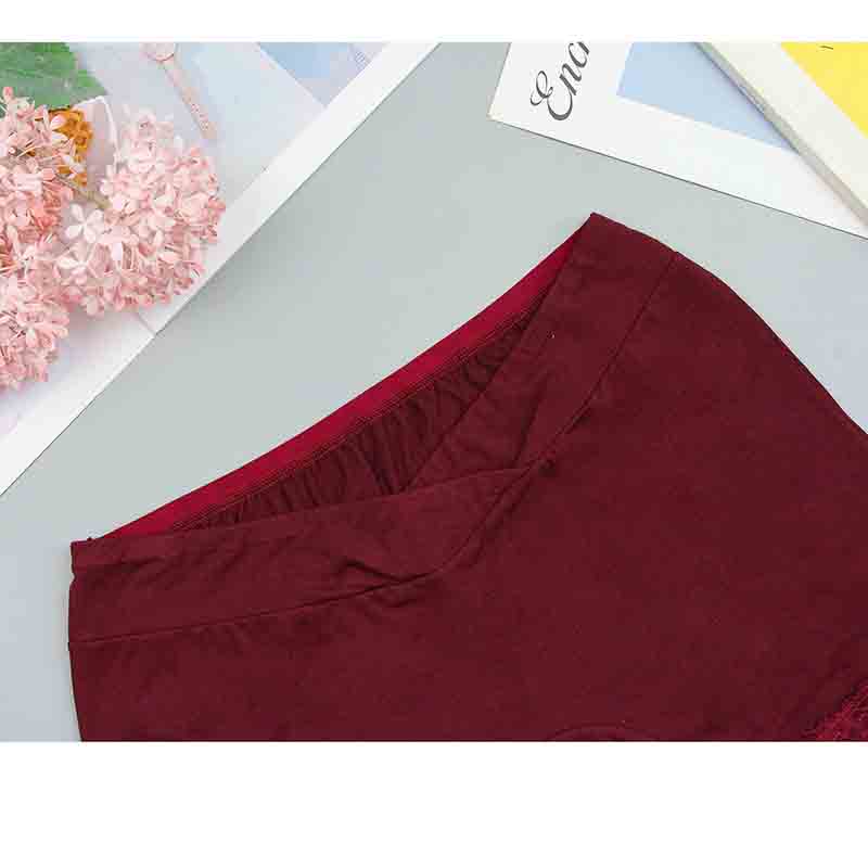 Với chất liệu cotton co giãn 4 chiều và thấm hút mồ hôi tốt, quần lót đùi ren cạp chéo Emum (đỏ đô) thấm hút mồ hôi tốt giúp mẹ bầu thoải mái khi mặc. Đặc biệt với thiết kế cạp chéo giúp mẹ không bị cấn hay khó chịu bụng kết hợp với viền ren tăng thêm nét điệu đà cho mẹ.