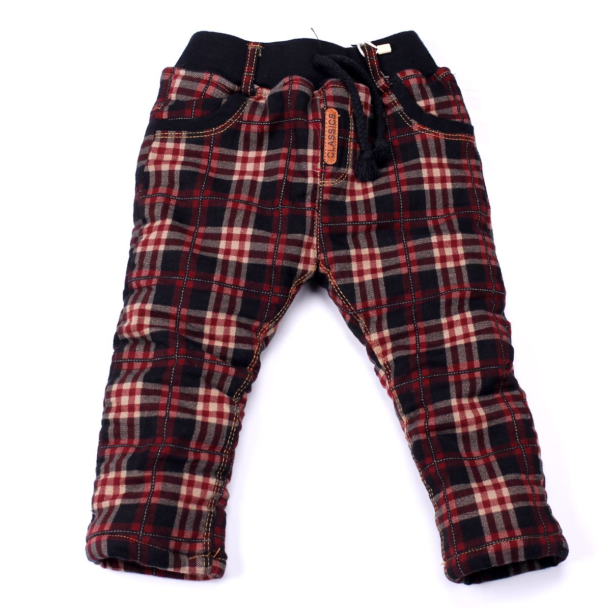 Quần nỉ dày dặn với họa tiết caro nổi bật