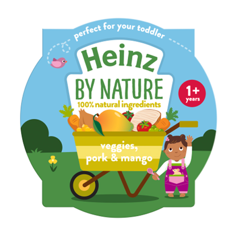 - Rau củ, thịt heo và xoài nghiền Heinz là thức ăn dặm được chế biến sẵn dành cho bé từ 1 tuổi