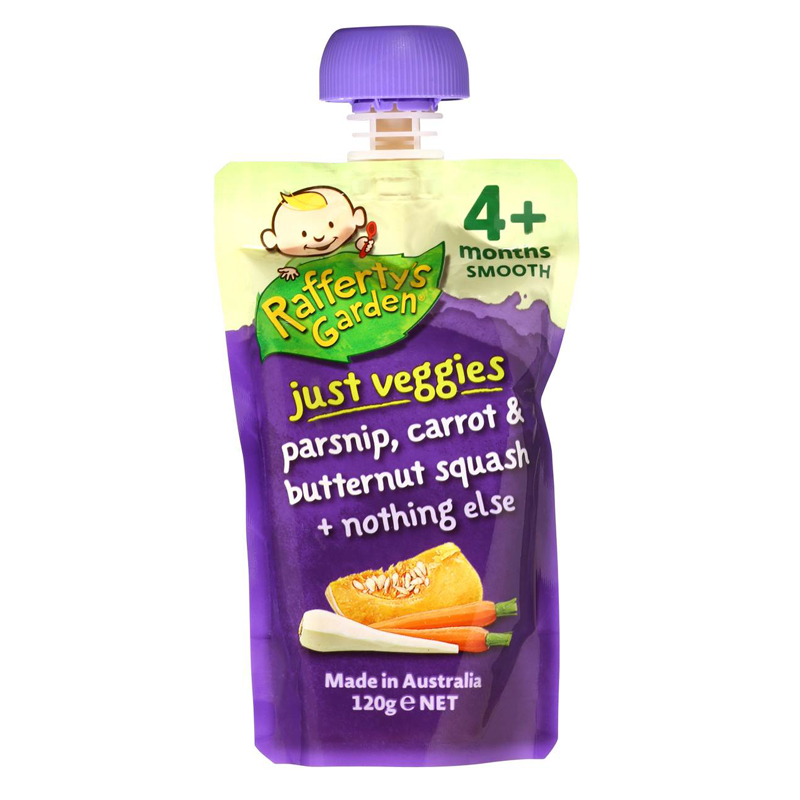 Với loại rau củ quả trồng theo phương pháp hữu cơ, không chứa thành phần biến đổi gen, rau củ xay mịn Rafferty's Garden - Củ cải, bí ngô, cà rốt (4m+) là thực phẩm bổ sung dành cho bé từ 4 tháng trở lên. Sản phẩm được xay nhuyễn, không bổ sung thêm bất cứ chất nào, giữ nguyên hương vị tự nhiên cho bé.