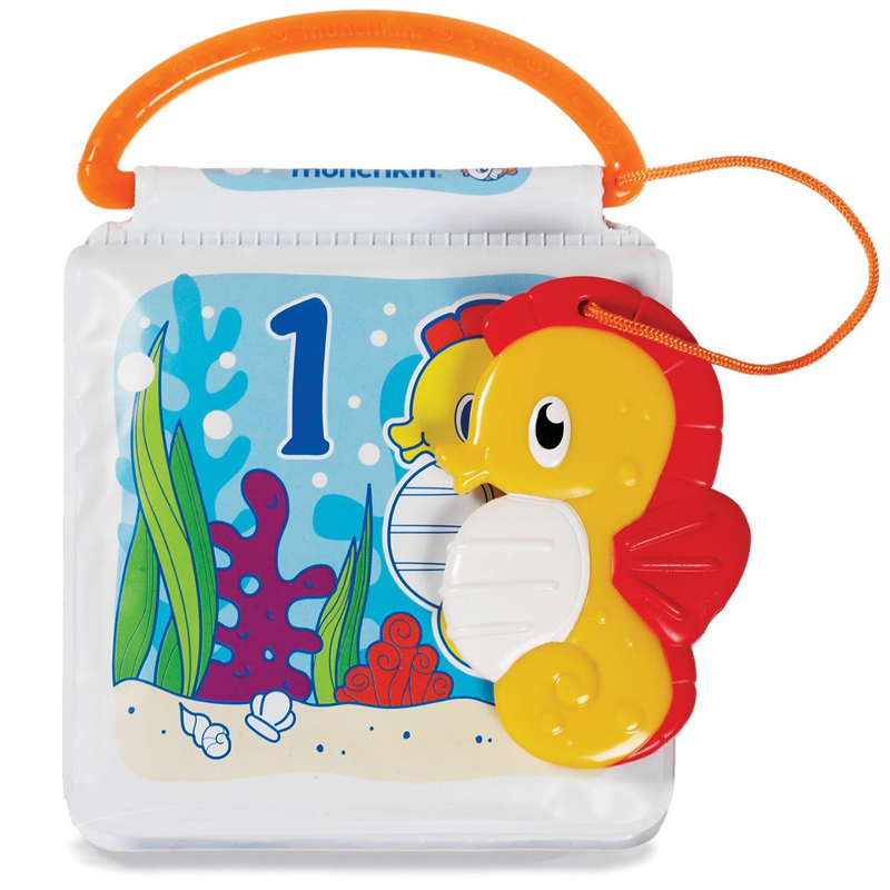 Munchkin 21002 - Sách cho bé chơi trong nhà tắm Bath Book được in hình các sinh vật biển như cá ngựa, bạch tuộc, rùa biển... và các con số từ 1 - 5, giúp bé hiểu thêm cuộc sống của các loài vật và học cách đếm số