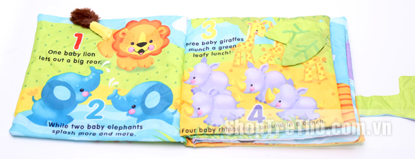 - Sách vải Counting Animals của hãng Fisher price - Dạy bé các số điếm cơ bản.