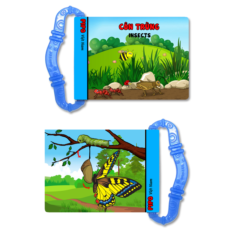 - Mỗi cuốn sách gồm 8 trang sách (4 tờ) theo chủ đề côn trùng giúp bé cách nhận dạng, đọc tên các loại côn trùng thường gặp trong cuộc sống