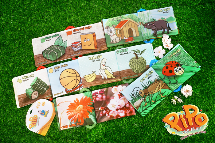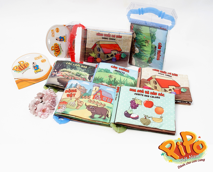 Sách vải và gặm nướu PiPo có in cả tiếng Việt và tiếng Anh