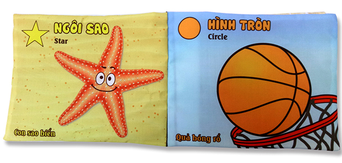 - Trang sách được may từ chất liệu vải mềm mại, đã qua khử trùng, bền màu lâu phai, không bị rách ngay cả khi bé nghịch xé.